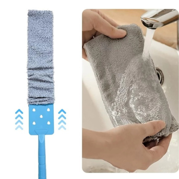 Equipado com uma cabeça de microfibra dobrável, esta escova adapta-se a vários ângulos, garantindo uma limpeza completa de superfícies e cantos.