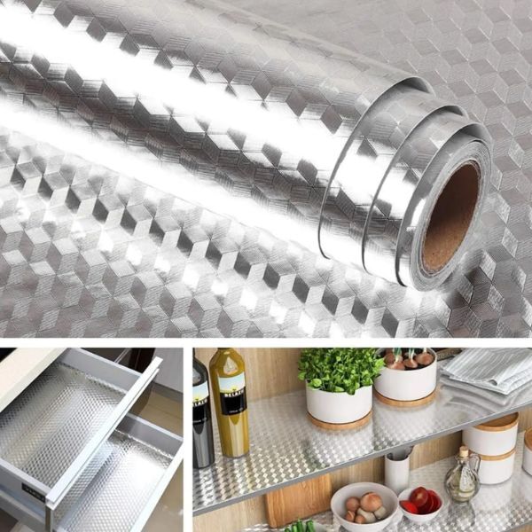 Feitos em folha de alumínio de alta qualidade, estes adesivos protegem as suas bancadas, armários e paredes de respingos de óleo e manchas persistentes. As suas propriedades resistentes ao calor garantem durabilidade, tornando a manutenção da cozinha mais fácil.
