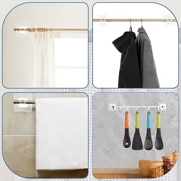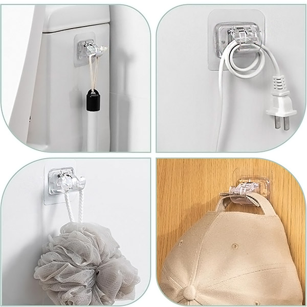 Os ganchos autocolantes podem ser facilmente colocados numa superfície plana, e pode colocar vários acessórios, como toalhas, utensílios de cozinha, acessórios de moda, entre outros.