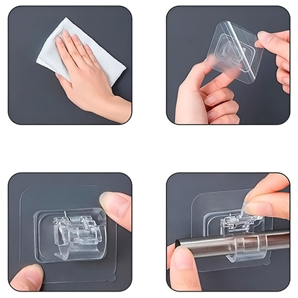 Aplicação: Primeiro, certifique-se de que a superfície está bem limpa. Quando estiver seca e sem detritos, marcar e medir o local específico onde vai instalar o gancho. Fixar o gancho com o lado autocolante. Aguardar 12 horas após a instalação antes de utilizar.