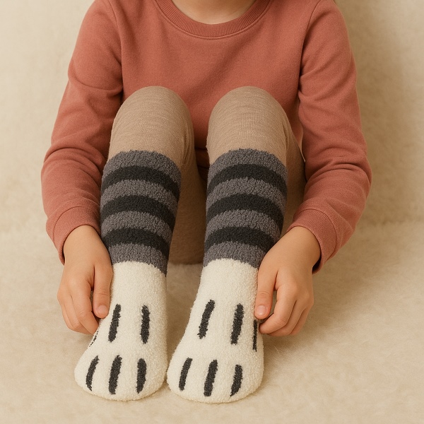 Meias com tema de gato adoráveis que não só têm um aspeto encantador, como também mantêm os seus pés quentes nos dias mais frios de inverno.