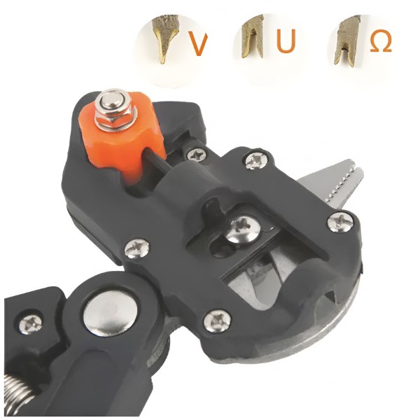 Esta ferramenta possui 3 lâminas substituíveis (V, U, Ω) que permitem executar diferentes tipos de cortes, tornando-a perfeita para várias tarefas de poda e enxertia.